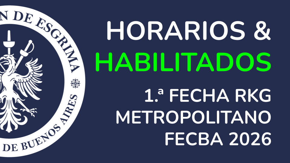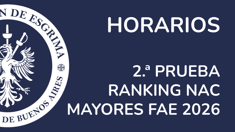 NUEVOS PLAZOS DE INSCRIPCIÓN Y REQUERIMIENTOS PREVIOSCIERRE DE INSCRIPCIÓN: 06/04/2026 a las 23:59 🤺 Evento: IV Maratón Internacional de Sable - ABIERTA y OBLIGATORIA ➡️ Categoría: Mayores. 👥 Participantes: Atletas nacionales y extranjeros. Los deportistas participan en representación de sus clubes. 📍 Lugar: CeNARD - CABA - Google Maps 📆 Fecha de competencia: 16 de mayo de 2026. ✍️ Inscripción: HABILITADA - [...]